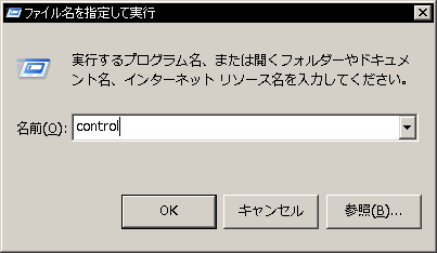 | 3. | 「ファイル名を指定して実行」ダイアログが表示されたら、「control」と入力して[OK]キーを押してください。