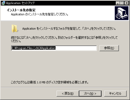 | 4. | 「インストール先の指定」ダイアログが表示されたら、インストール先を指定してから「次へ」ボタンを押してください。
