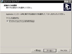 | 6. | 「追加タスクの選択」ダイアログが表示されたら、「デスクトップ上にアイコンを作成する」ボックスにチェックを入れてから「次へ」ボタンを押してください。