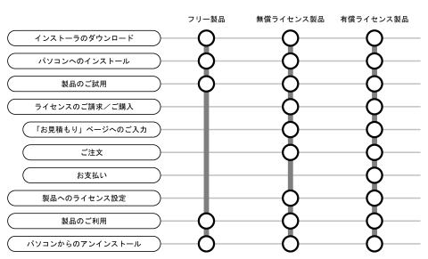 お試し期間の満了した後にライセンス製品を使い続けるには、製品のライセンスをご注文(ご請求/ご購入)いただく必要があります。その流れは次のとおりです。