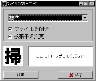 | 「FileClean」は、不要なファイルを削除したり、ファイルの拡張子を統一したりすることができるソフトウェアです。文書作成をはじめとする各種のアプリケーションの中には、バックアップファイルやログファイルを作ったり、中間ファイルを残したりするものが多くあります。こうした不要なファイルはパソコンを使い続けているうちに溜まっていき、ディスク容量を圧迫したり、重要なファイルを見つけ出しにくくしたりする原因になります。 また異なるアプリケーションが作成するファイルは、同じ種類なのにアプリケーションによって拡張子が異なることがあります。たとえばテキストファイルの拡張子には「.txt」と「.TXT」がありますし、写真ファイルの拡張子には「.jpg」・「.JPG」・「.jpeg」・「.JPEG」の4種類があります。こうした拡張子の混在は、エクスプローラーでの表示を不揃いにしたり、ファイルの管理を煩雑にしたりする原因になります。「FileClean」を使うと、不要となったファイルをまとめて削除したり、混在している拡張子を一つに揃えたりすることが簡単にできます。 | ||