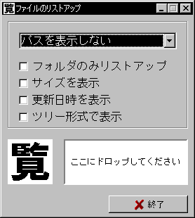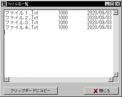 | 「FileList」は、選択されたファイルの名前をテキスト形式でリストアップすることができるソフトウェアです。ファイルやフォルダをまとめて選択し、「FileList」にドロップすれば、Excelのワークシートに直接貼り付けることのできるタブ区切り(TSV)形式のリストを簡単に作ることができます。Windowsの検索機能を使って見つけたファイルの一覧表や、特定のディレクトリの中にあるファイルの一覧表を作ったりするのに役立ちます。またファイルのサイズやタイムスタンプを文字列として取得したい時に「FileList」を使うと、エクスプローラーの表示を目で見て書き写したり、ファイルの「プロパティ」ウィンドウをいちいち開いたりする必要がなくなり、とても能率的です。 | ||