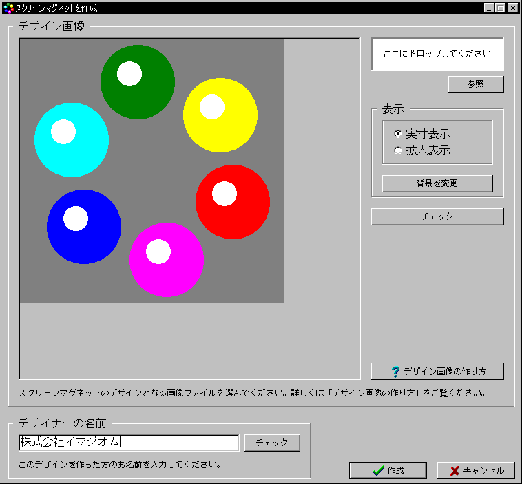 | 「スクリーンマグネット クリエイター」は、お好きな画像からオリジナルの「スクリーンマグネット」を作るソフトウェアです。お描きになったカットやイラスト、お撮りになった写真、インターネットからダウンロードなさったフリー画像などから、世界で一つだけの「スクリーンマグネット」を作ることができます。オリジナルの「スクリーンマグネット」を見ながらのパソコンライフは、ますます楽しくなること間違いありません。またオリジナルの「スクリーンマグネット」を「イマジオム・アウトレット」サイトで公開し、多くの人に使ってもらうこともできます。一度作った「スクリーンマグネット」のデザインは変わることがなく、ずっと使われ続けます。自分のデザインしたソフトウェアがどこかで誰かの役に立っているというのは、とても気持ちが良いものです。よいデザインの「スクリーンマグネット」を作られましたら、ぜひともご応募くださいませ。 | ||