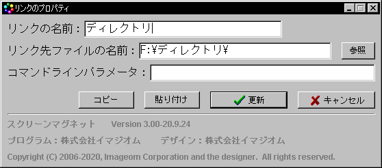 | 「スクリーンマグネット」は、ファイルやディレクトリへのリンク(ショートカット)を登録することのできる小さなソフトウェアです。一般的なパソコン仕事では、多くの時間や手間が、目的のファイルを探す作業に費やされます。「スクリーンマグネット」を使うと、ファイルやディレクトリを開くのにかかる時間・手間を減らし、パソコン仕事の無駄をなくすことができます。バリエーションに富む個性的なデザインは、画面のどこにあっても一目でわかりますし、多数の「スクリーンマグマット」を同時に使っていても、それぞれを簡単に見分けることができます。マウスを使わずにキーボードだけで操作することができますので、目的のファイルやディレクトリを「開きたい」と思ってから、実際にそれを開くまでにわずか数秒しかかかりません。普段は目立たないタスクトレイアイコンになっていますが、ショートカットキーを入力すると瞬時に画面に現れますので、他の作業を邪魔することもありません。リンク先としてはウェブサイト(URL)や、他のスクリーンマグネットを登録することもでき、リンクの数が増えても軽快操作は変わりません。そして別製品の「スクリーンマグネット 整理箱」と組み合わせると、さらに便利に使えます。 | ||